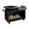Ibland behöver vi flytta värmekällan, skjuta upp glöden mot stekhällen. Vi har en designad OFYRhandske då vi tycker att det är smidigt att bara greppa tag i ett brinnande vedträ och flytta det.