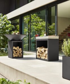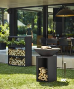 Samma känsla, stil och enkelhet som OFYR, men med inbyggd vedförvaring. Storleken är 100 cm. OFYR vedförvaring passar lika bra för sig själv som i kombination med andra OFYR enheter såsom arbetsborden.
