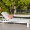 Levereras med vit stomme och stenfärgade dynor – en tidlös och elegant kombination som passar i de flesta utomhusmiljöer.