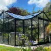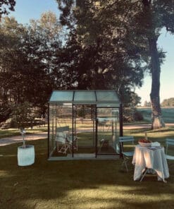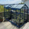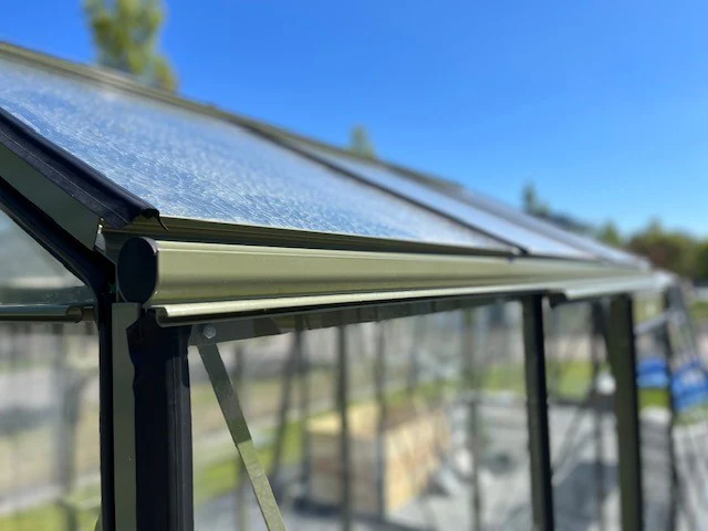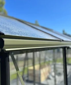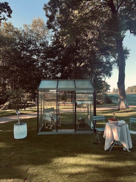 Automatisk fönsteröppnare ingår som säkerställer bra ventilation i växthuset utan din ansträngning. Det kommer med en grå stuprörssats som standard. 4 mm säkerhetsglas, hamrat takglas Fördelar med ett litet växthus från Växthusbolaget Det är kostnadseffektivt med mindre växthus eftersom de i allmänhet är billigare att bygga och underhålla jämfört med mellanstora växthus, större växthus och orangeri. Ett litet växthus är lätt att hålla varmt, ventilera och vattna, vilket gör det idealiskt för nybörjare eller de med begränsad tid. Växthusbolagets växthus har aluminiumprofiler. Dessa kräver inget underhåll och håller sig fina även i kustklimat. Montering av växthus Du sparar utrymme med små växthus. De kan placeras på en mängd platser, till exempel på uteplatser, däck eller balkonger och kan enkelt flyttas om det behövs. Du kan oftast själv bygga ett litet växthus själv, vilket sparar in på monteringskostnad. Bor du i Skåne och vill ha hjälp med att montera ditt växthus kan våra tekniker hjälpa dig mot en fast kostnad. Växthusbolagets växthus, tillverkade i Europa Växthusbolagets växthus tillverkas i Frankrike och Belgien men vårt lager finns i södra Sverige i den lilla orten Åstorp. Lagerväxthus kan oftast levereras inom en vecka och beställningsmodeller tar 6–8 veckor. Väljer du standardfärg, bor i Skåne och är snabb på att bygga, då kan du ha ett litet växthus uppe på en dag. Växthusglas Alla våra små växthus har 4 mm säkerhetsglas, vilket ger mycket hög tålighet och säkerhet jämfört med vanliga glasskivor. På Växthusbolagets små växthus finns både hamrat säkerhetsglas och klart säkerhetsglas beroende på vilken modell du väljer. Säkerhetsglaset är både i tak och på sidorna. Det hamrade glaset i taket bidrar till att begränsa stark solinstrålning, för att dina plantor inte ska brännas. I våra växthus ingår alltid en bas som ger stöd och stabilitet åt konstruktionen och en enklare montering. Du behöver inte mura upp någon grund för växthuset att stå på då konstruktionen är självbärande. Inredning till växthus