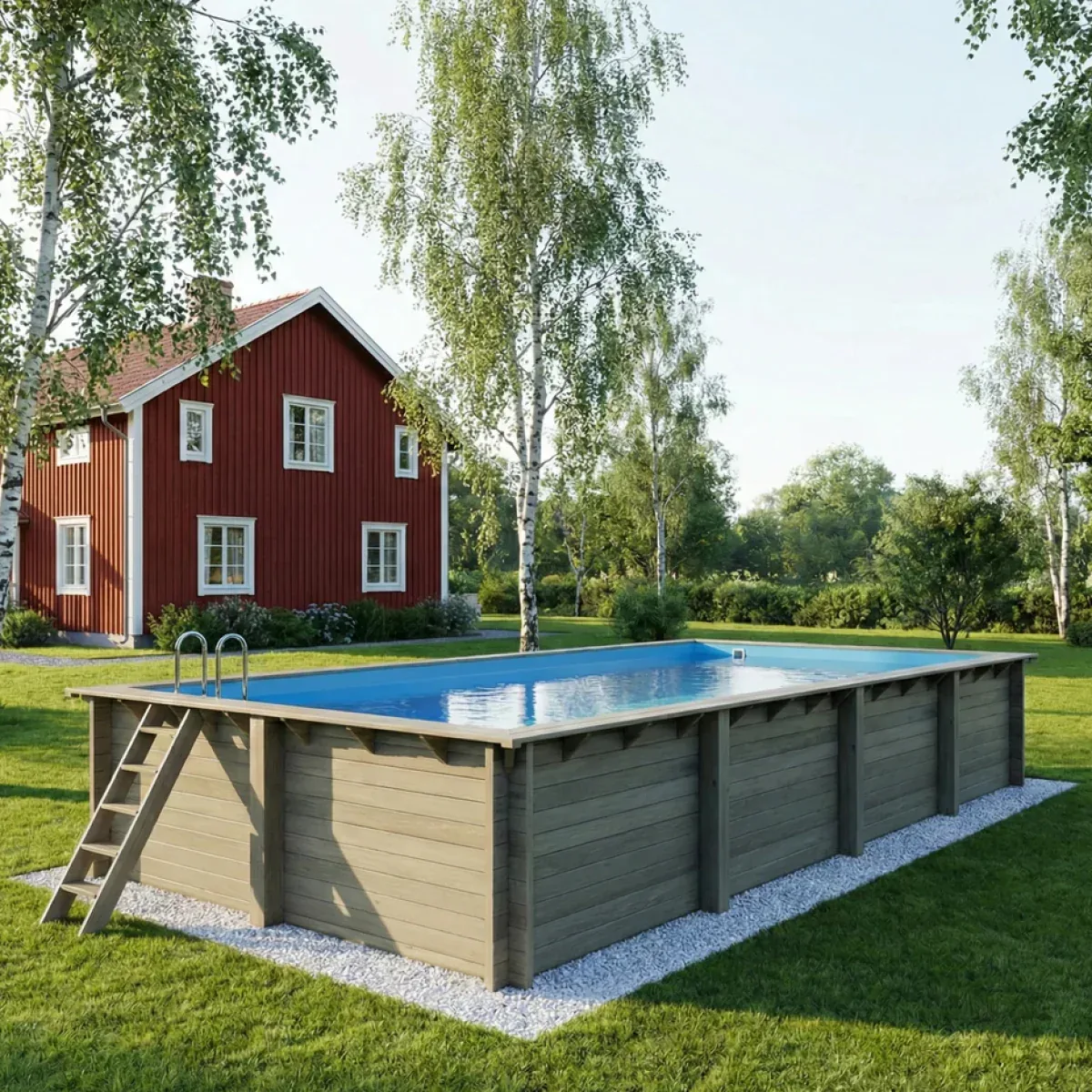 4*8 träpool – en imponerande kombination av utrymme, stabilitet och tidlös design.