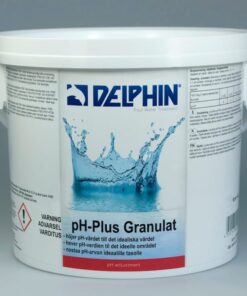 Lös pH-Plus granulat portionsvis i en hink med vatten. OBS! Fyll alltid vatten i hinken först! Tillsätt därefter lösningen försiktigt i bräddavloppet, eller ännu bättre längs poolkanten för bästa effekt. Tillsätt inte lösningen i närheten av metalldelar.