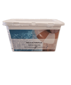 Tablettform, speciellt framtagen för att med en enda behandling avlägsna bakterier i allmänhet i poolen. Den förhindrar algbildning och ser till att vattnet hålls klart. Produkten innehåller inga metaller. Idealiskt för enkelt och effektivt underhåll av pooler.