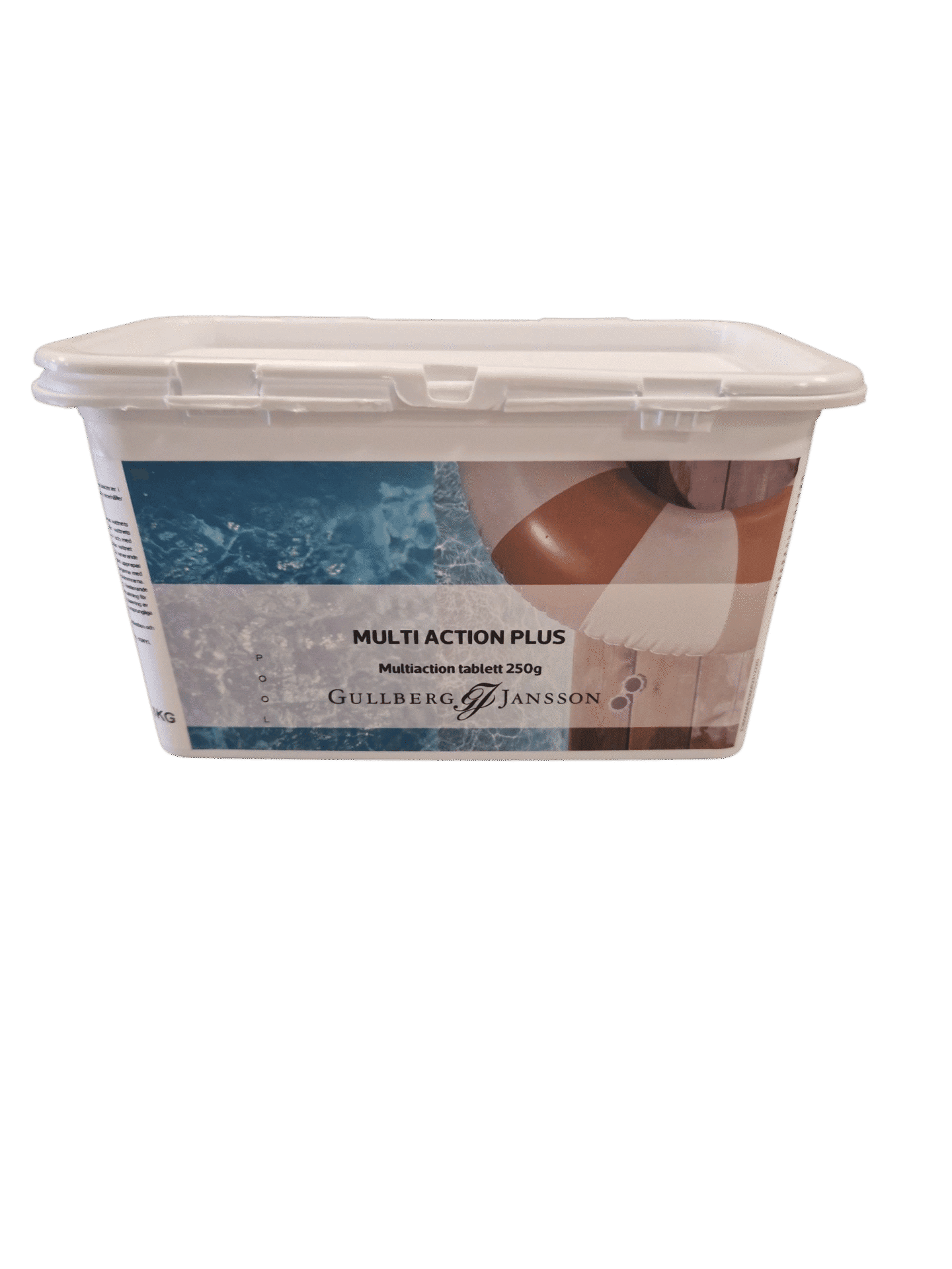 Tablettform, speciellt framtagen för att med en enda behandling avlägsna bakterier i allmänhet i poolen. Den förhindrar algbildning och ser till att vattnet hålls klart. Produkten innehåller inga metaller. Idealiskt för enkelt och effektivt underhåll av pooler.