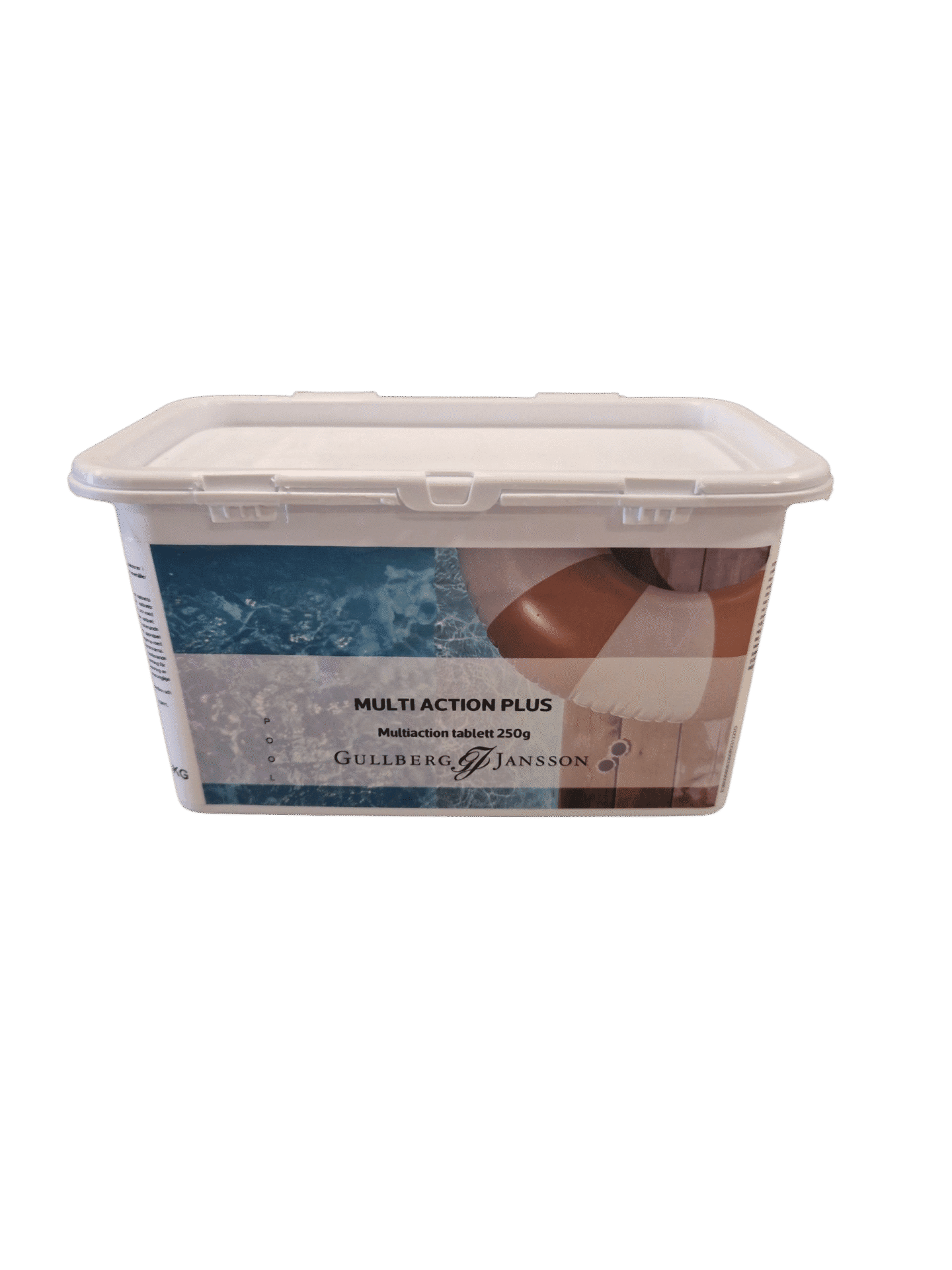 Fast tablett, speciellt framtagen för att med en enda behandling avlägsna bakterier i allmänhet i poolen. Den förhindrar algbildning och ser till att vattnet hålls klart. Produkten innehåller inga metaller. Idealiskt för enkelt och effektivt underhåll av pooler.