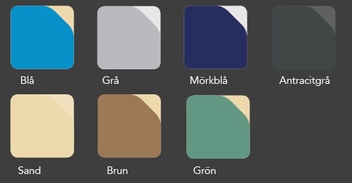 Finns i storlekarna från 3,4m*6,4m till 5,4m*10,4m. Kan beställas i blå, grå, mörkblå, antracitgrå, sand, brun, emerald och grön.