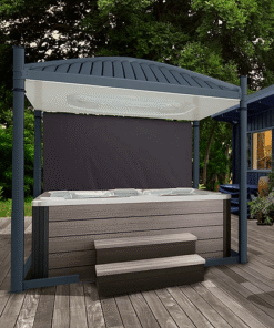 Välj själv hur många sidopaneler du önskar på din Covana Oasis. Du kan antingen ha på en eller två sidor, som insynsskydd mot grannen, eller på tre eller fyra sidor för att skapa en mer privat badmiljö. Finns också i helt mörkläggande solid. Ingen kan då se ut eller in. Fungerar som en rullgardin som enkelt kan rullas upp när den inte används. Påverkar inte spabadstakets elektriska funktion utan hänger snyggt med när du fäller upp eller sänker taket. Bredd på screen: Kortsida: 88,25? (ca 224 cm) Långsida: 93,5? (ca 235 cm)
