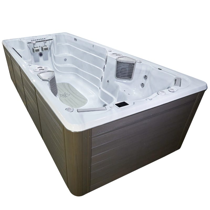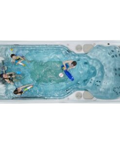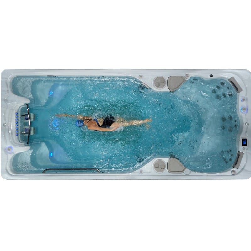 Swimspa erbjuder dig möjligheten att med hjälp av jetströmmen i vattnet kunna simma på samma plats utan onödiga vändningar. Med den ställbara jetströmmen som ditt motstånd kan du simulera en riktig simtur utan att behöva ta dig till ett badhus. Använd simdelen för simträning, rehabilitering eller helt enkelt för lek och bad.